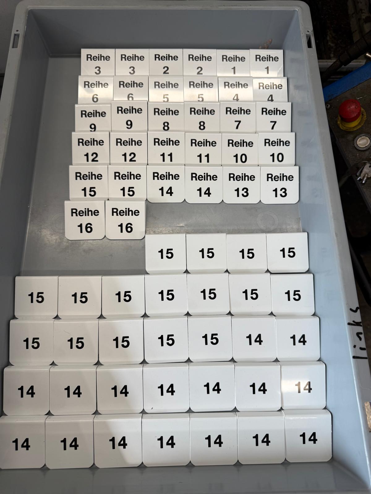 Ob Zahlen, Buchstaben oder Reihenbezeichnungen – du entscheidest, welche Informationen auf deinen Sitznummern erscheinen. Die Schilder lassen sich individuell gestalten und optimal an deine Struktur anpassen.